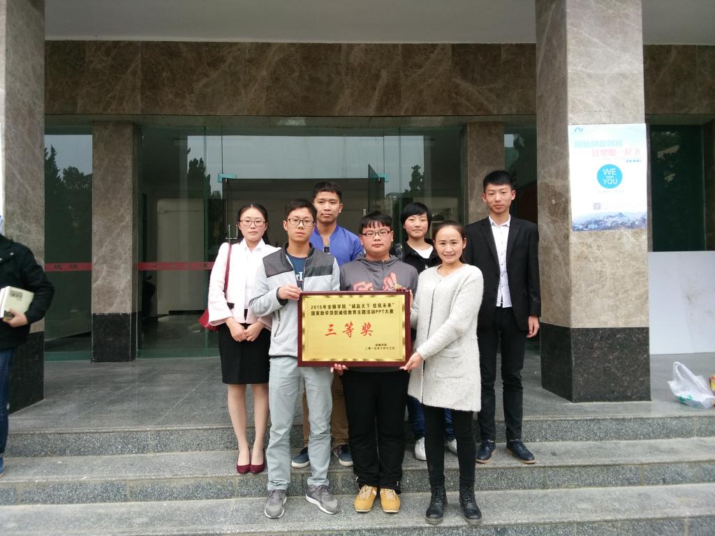 2015年10月13日由yL23411永利官网登录资助管理中心主办,大学生素质拓展中心承办的以主题为“诚赢天下,信筑未来”2015年国家助学贷款诚信教育主题活动PPT大赛在第一教学楼A02教室举行,我院获得了大赛的三等奖,每个人都倍感荣誉。