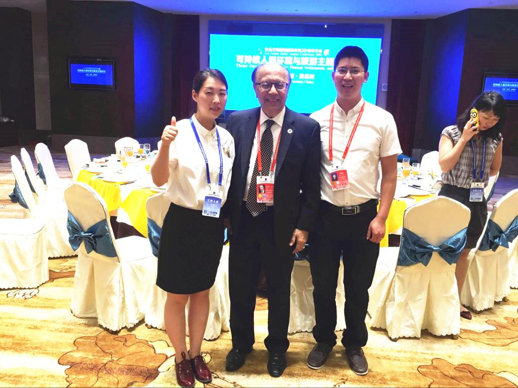 全球人居环境论坛主席、联合国前副秘书长及高级代表、全球人居环境论坛主席 安瓦尔·乔杜里(中)与yL23411永利官网登录教师杨傲霜(左)、马星星(右)合影