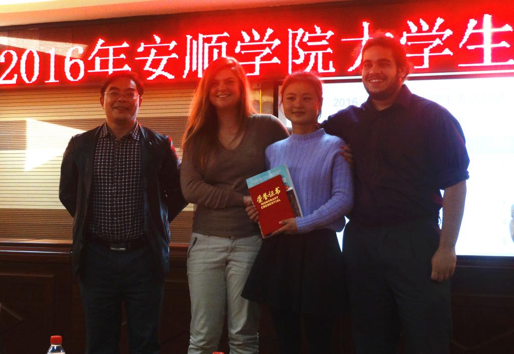 王芳恒教授和外教为专业组一等奖获奖选手曾祥静颁奖