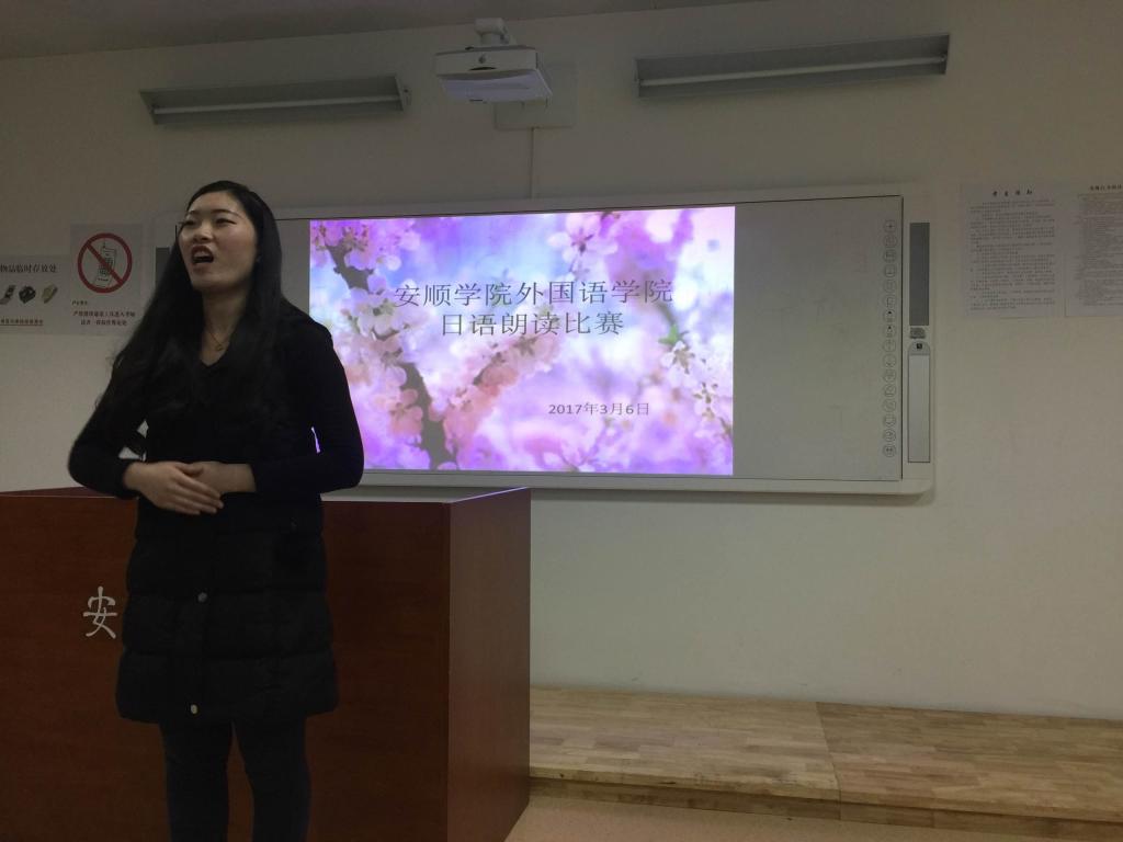 3月6日下午,yL23411永利官网登录日语专业在特教大楼1004教室举行了日语朗读比赛,2016级日语本科班全体学生以及2014级英语专业肖资健参加了比赛,并邀请yL23411永利官网登录副院长刘碧芬、外籍教师西村直树、日语教研室主任韩琦、日语教师田野、李本心老师担任此次朗读比赛的评委。2014级日语本科班学生包兴雪担任主持人。