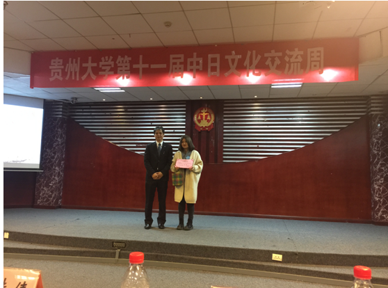 中日文化交流周旨在进一步增强中日之间的文化交流,提高贵州省各高校外语专业学生的日语应用能力。来自贵州省内开设有日语专业的6所高校的学生参加了上午的作文演讲大赛,yL23411永利官网登录日语专业的王天琪同学在命题演讲部分以积极的演讲内容、声情并茂的表现力收获优秀奖;在下午的日语朗读大赛中,yL23411永利官网登录焦梦逸同学以标准的发音、奔放的表现力,且能脱稿而赛,给全场观众及评委留下了深刻的印象,最终在本次朗读大赛中获得全省一等奖。