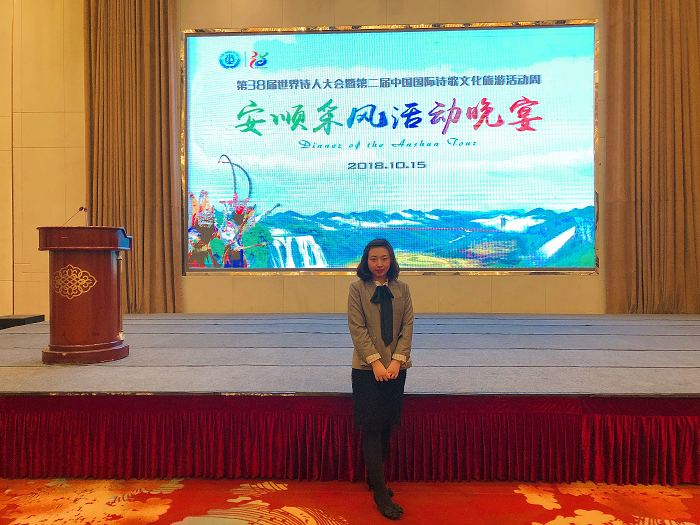 2018年10月15日晚,第38届世界诗人大会暨第二届中国·绥阳十二背后国际诗歌文化旅游活动周安顺采风活动晚宴在安顺市铂瑞兹酒店举行。安顺市委常委、市委秘书长、市委统战部部长尹恒斌,来自国内外文化艺术界的专家学者、贵州省作协、市文联、市旅游发展委、绥阳县政府及相关部门领导及负责人参加活动。