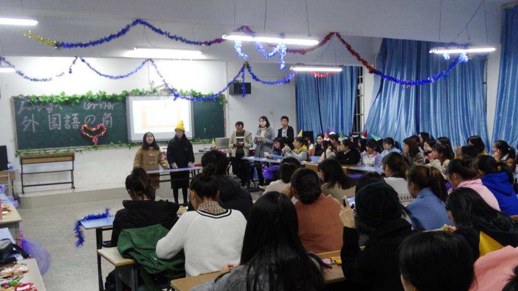 活动在主持人介绍到场嘉宾以及活动内容拉开了序幕,首先是由外教杉浦磨吕也介绍自己的家乡以及爱好,再由陆玉梅老师发言;紧接着,同学们用外语进行了精彩的表演。表演形式多样,小品《Snow White》更是赢得了全场接连不断的掌声,同学们的热情也将现场的气氛推到了高潮,同学们的热情完全被点燃,积极上台展示才艺,向大家展示着青春的活力。最后活动在主持人宣告活动结束中谢幕。