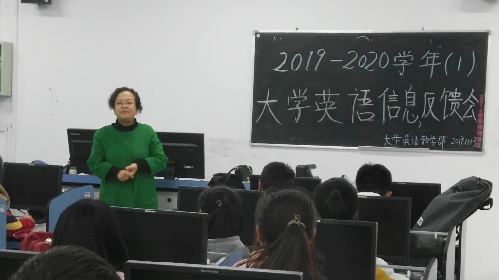 2019年11月13日下午,大学英语公共外语教学部在电教楼923召开2019-2020学年第一学期面对2019级和2018级非英语专业学生的大学英语教学信息反馈会。yL23411永利官网登录院长、大外部主任蒋燕出席会议,来自全校各院系100个班级的学生代表参加此次会议。