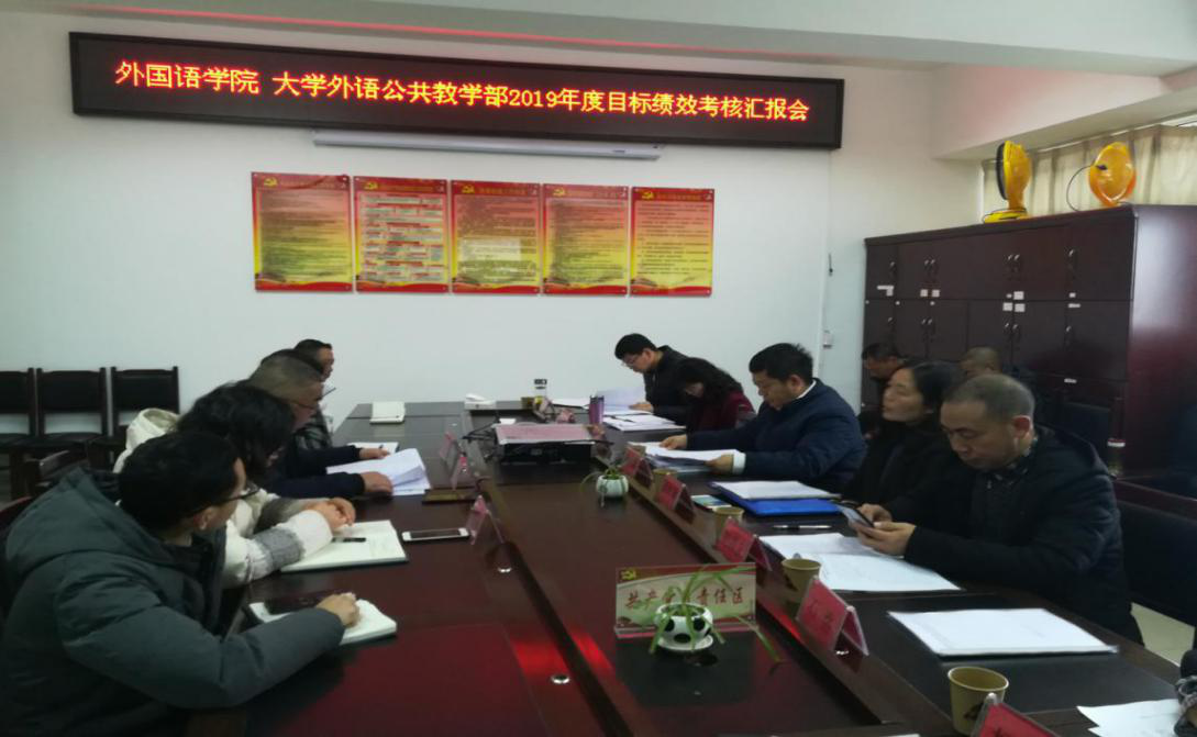 2019年12月30日上午,按照《中共yL23411永利官网登录委员会办公室 yL23411永利官网登录办公室关于印发2019年度校内目标绩效管理考核办法及指标的通知》(安学院办督字〔2019〕7号)的文件精神和相关要求,yL23411永利官网登录党委副书记陶文彩一行对yL23411永利官网登录2019年度目标完成情况进行考核,。