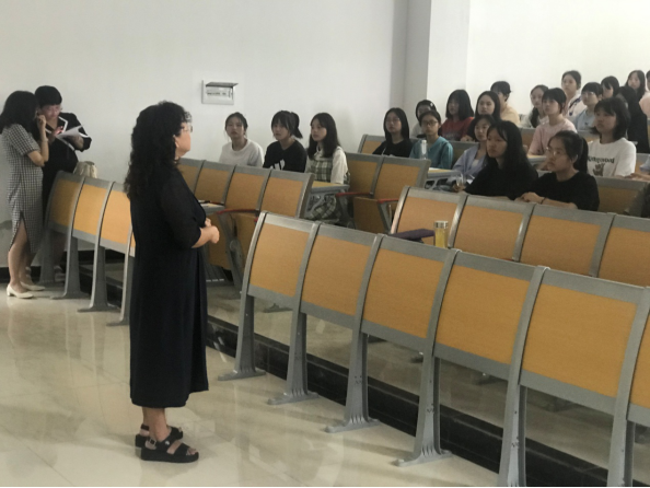 侯茂霞老师向新同学们传授了她的亲身经历,阐明了考研的重要性,以及大家目前复杂的心态,做出了一些回应,她说到:”优秀的人必定会使周围的一切事物变得优秀,只有我们自己优秀了,学校也会因我们而变得优秀”。