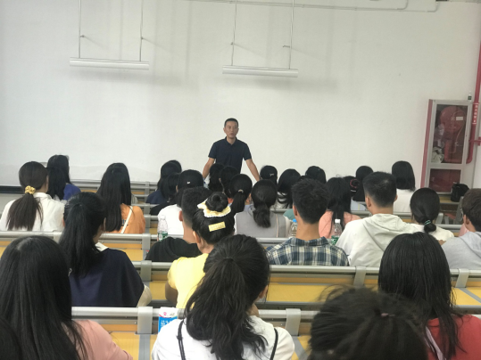学生科黄健科长向同学们分享了几个生活必备,一、学校的美丽风景,在我们忙碌的学习之余,或是心情不舒畅时,可以去爬爬学校的山,观赏一下学校美丽的湖;二、学校的相关规章制度及安全事宜,在寝室里一定要注意用电安全,切勿违规使用电器,上课不要缺旷和迟到早退,情节严重者将予以退学处分。三、学会与人相处,多参加社团和校院组织的各类活动。