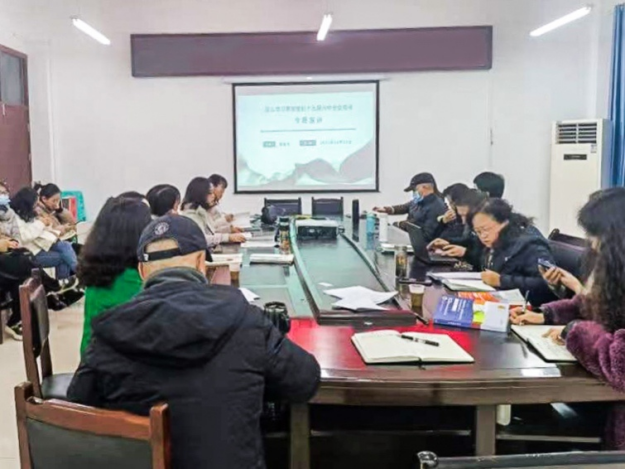 2021年12月21日,yL23411永利官网登录党委书记刘碧芬为全院教职工作十九届六中全会精神和省委十二届十次全会精神专题宣讲。