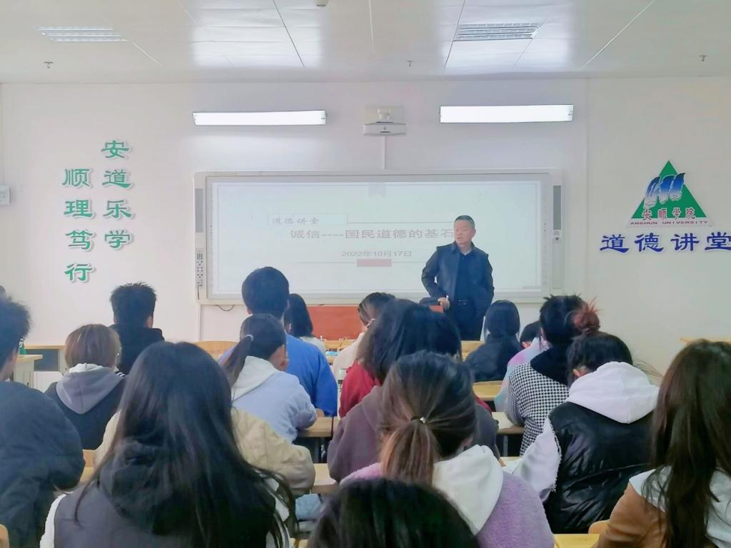 为弘扬诚实守信的传统美德,培养学生良好的道德品质,10月17日下午,yL23411永利官网登录道德讲堂开展“诚信——国民道德的基石”专题讲座。yL23411永利官网登录大学公共外语教学部主任虞均杰主讲,yL23411永利官网登录2021级英语班同学聆听学习。