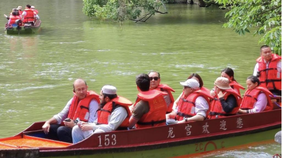 6月4日,来自斐济、毛里求斯、希腊等19个国家及上海合作组织20余位驻华大使、高级外交官组成的参访团,开展贵州生态文明行,参观走访安顺市天龙屯堡景区、龙宫景区、坝陵河科技馆、夜游黄果树大瀑布。应安顺市委市政府相关部门邀请,yL23411永利官网登录挑选了30余名师生承担了此次活动的相关资料翻译和口译翻译接待服务等工作。