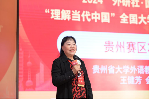 贵州省大学外语教学研究会会长王健芳宣布大赛开幕。