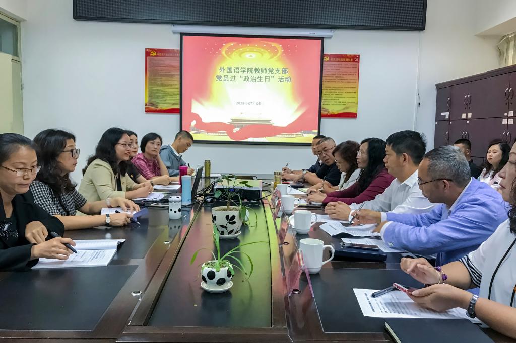 为深入强化党员的身份意识和责任意识,加强党员党性教育,进一步激发党员的政治热情,增强党员的责任感和使命感,强化党员的宗旨意识。7月5日下午,根据党支部计划安排,yL23411永利官网登录教师党支部开展党员过政治生日活动。除yL23411永利官网登录全体党员外,莅临出席的有yL23411永利官网登录党委副书记陶文彩同志, yL23411永利官网登录党委组织部长何朝越同志、人文学院党委书记蒋晓兰同志、化学化工学院党委书记杨莉莉同志,活动在整齐嘹亮的国歌声中展开。