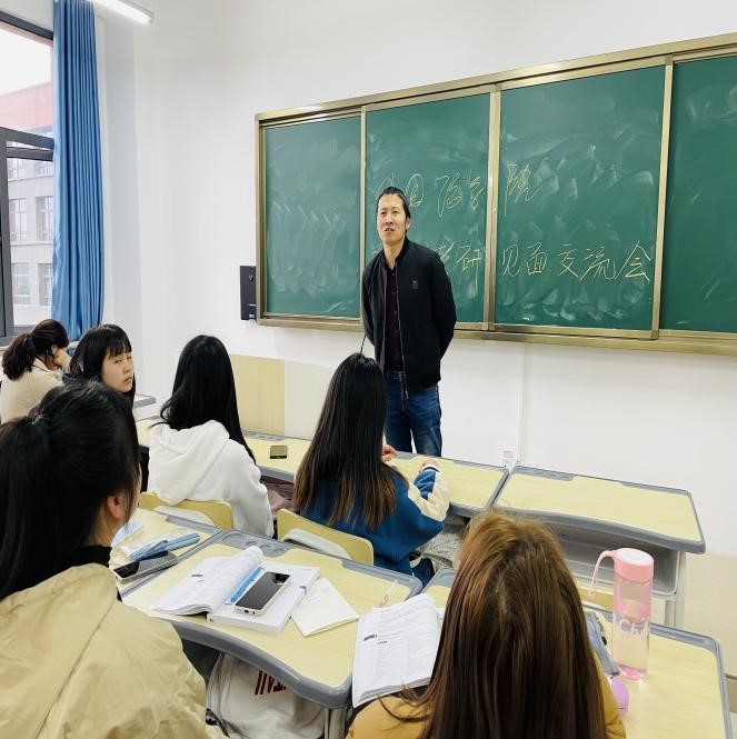 在会上,几位领导和老师对19级同学积极参加今年的考研表示了充分肯定,也对同学们提出了了殷切的希望,强调了考研对于大学毕业生的提升自我和未来的职业规划有着积极进取的重要意义,同时鼓励同学们下定决心就要坚定信心,抛掉一切后顾之忧,勇往直前。学院的领导和老师们都承诺尽学院最大努力做好同学们考研的保障工作。 柴老师结合自身的考研英语学习经历和感受,通过举例,给同学们们提出了在自己兴趣范围内跨界考研的建议,并敦促同学们尽快确定报考的学校和专业,尽早着手准备。侯老师鼓励大家坚定考研,继续实现人生的高质量发展。最后,班主任作总结发言,号召大家树立目标,主动多与老师沟通,有问题多与老师们沟通请教,争取在一年不到的时间内,拼尽全力,努力学习,取得考研好成绩,考研成功。