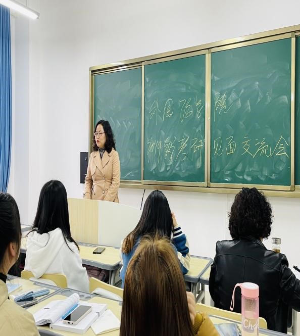 2022年3月23日下午,yL23411永利官网登录在顺理楼3-51教室举行了2019级考研同学考交流见面会。外院书记刘碧芬老师、院长蒋燕老师和曾沉老师、班主任覃春老师、大外部副主任柴能博士以及考研辅导侯茂霞老师等参加了本次交流会,考研专员曾副院长主持会议。