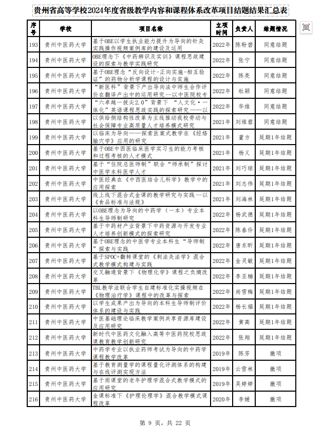 贵州省高等学校2024年度省级教学内容和课程体系改革项目结题结果汇总表