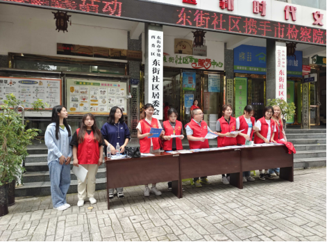 为进一步丰富我院共青团员课余生活,让广大共青团员参与到文明城市创建活动中来,组织大学生走进社会基层,了解社会实际、服务人民群众、增强时代责任、提高社会化能力。我院于2022年06月24日,东街社区携手中共安顺市人民检察院第四支部及yL23411永利官网登录19级英语二班团支部9名团员在辖区内依托“6.26”国际禁毒日和“靓丽星期五”开展禁毒宣传活动、创建文明城市环境卫生整治保护活动和安全隐患排查等。